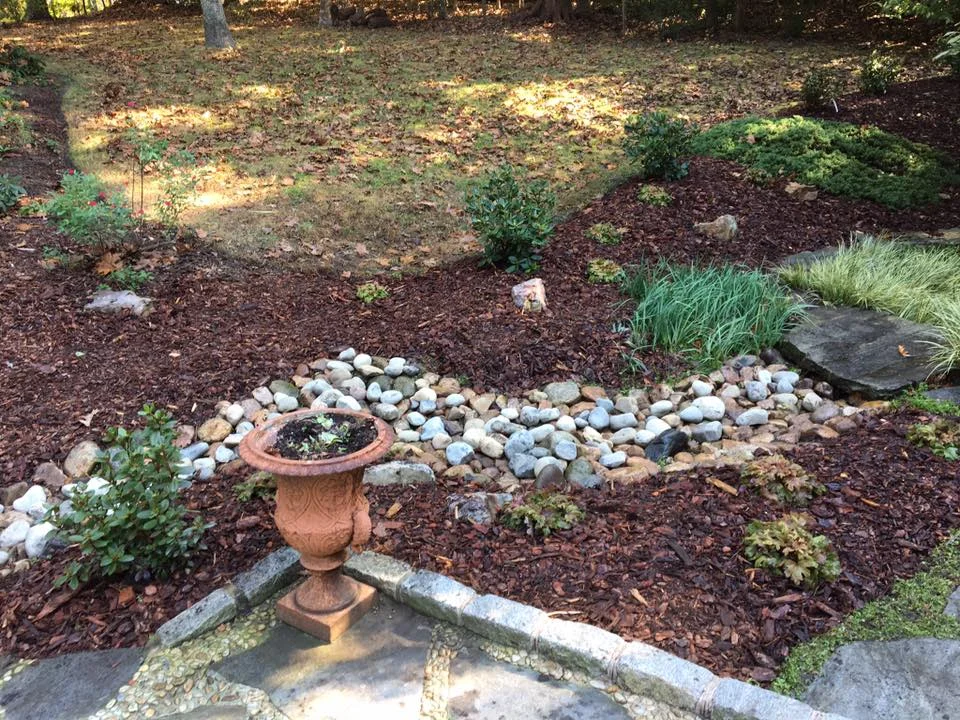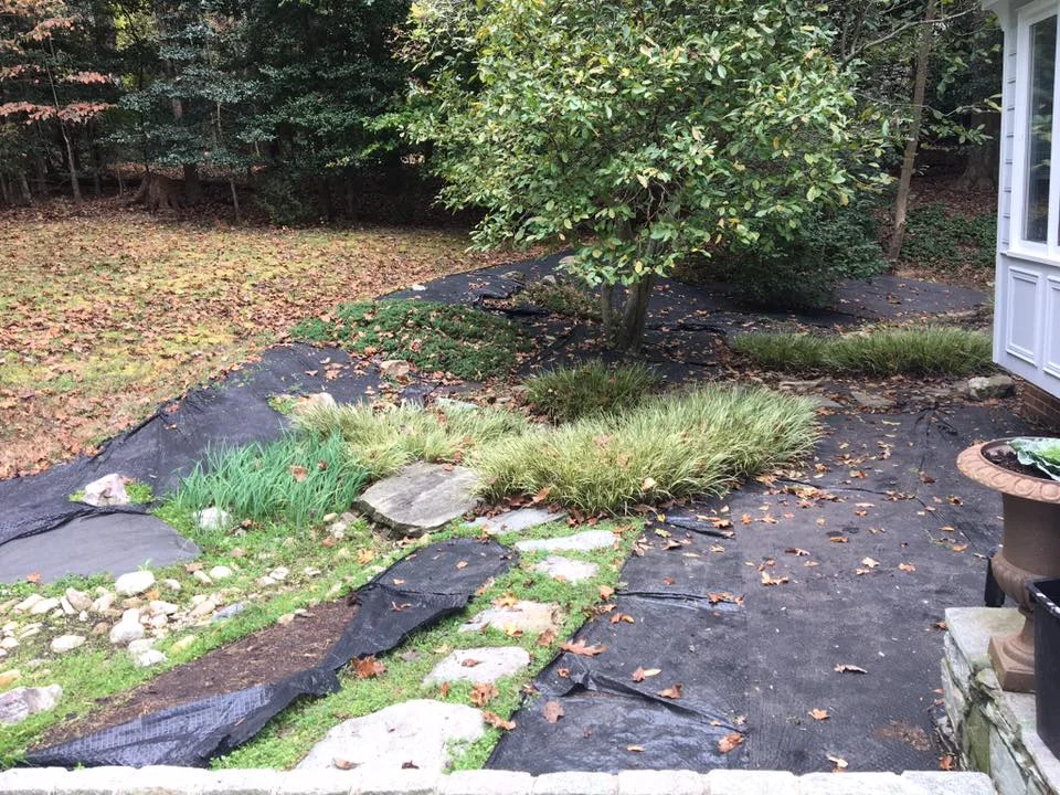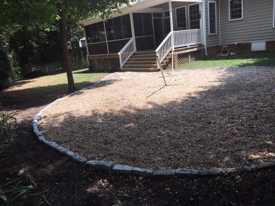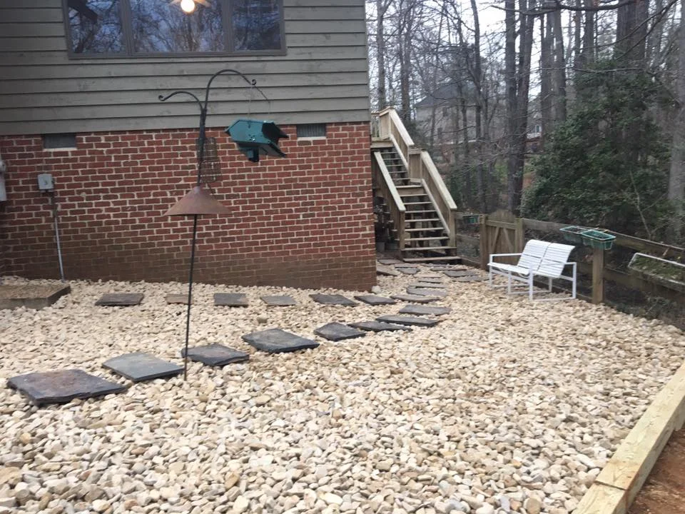 BACKYARD BED PREP, COBBLESTONE/FLAGSTONE, NATIVE PLANT INSTALL + MULCHING.