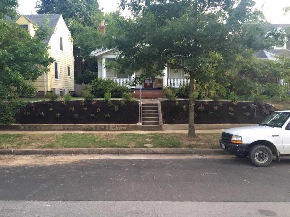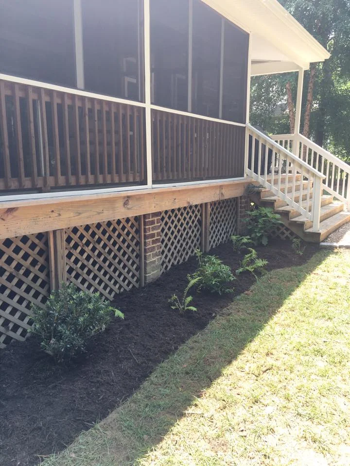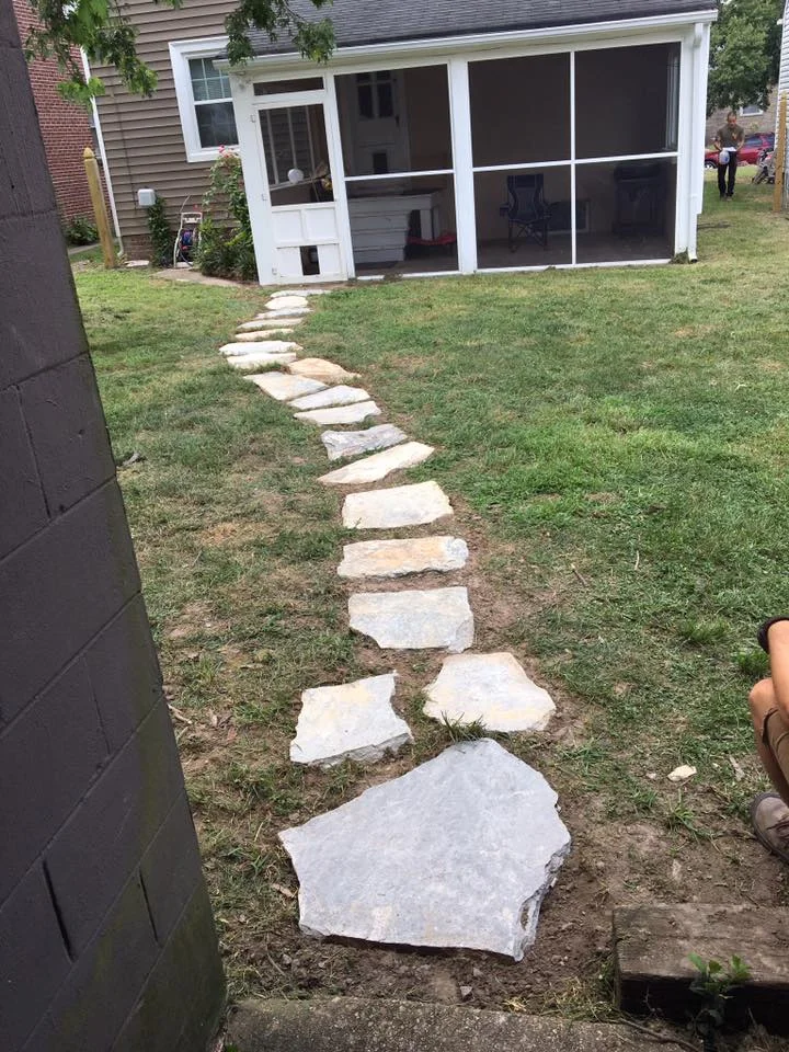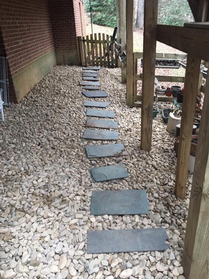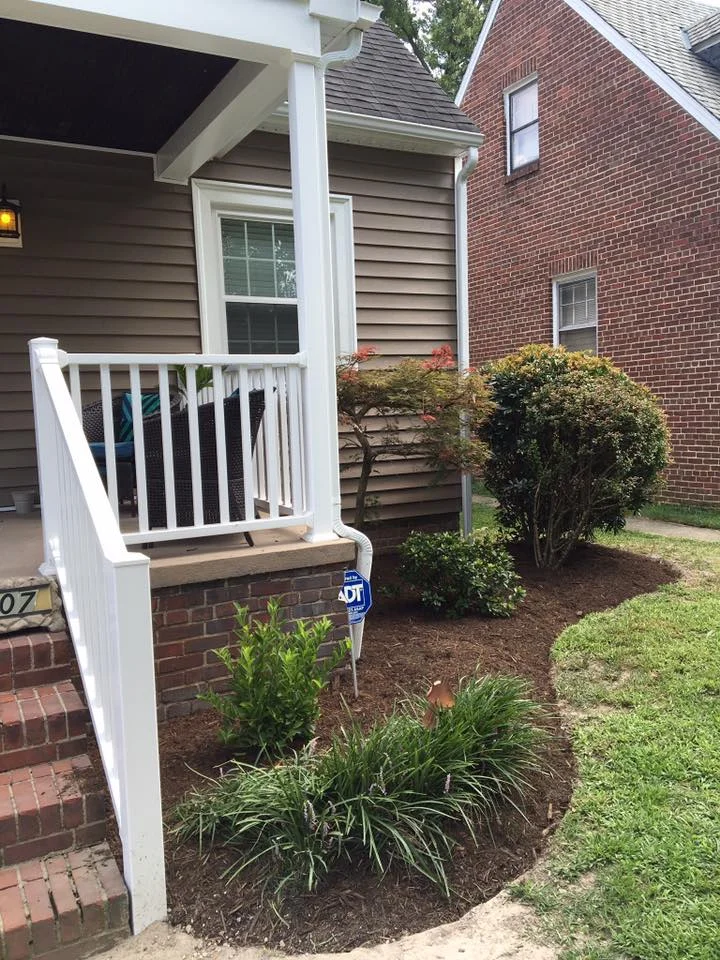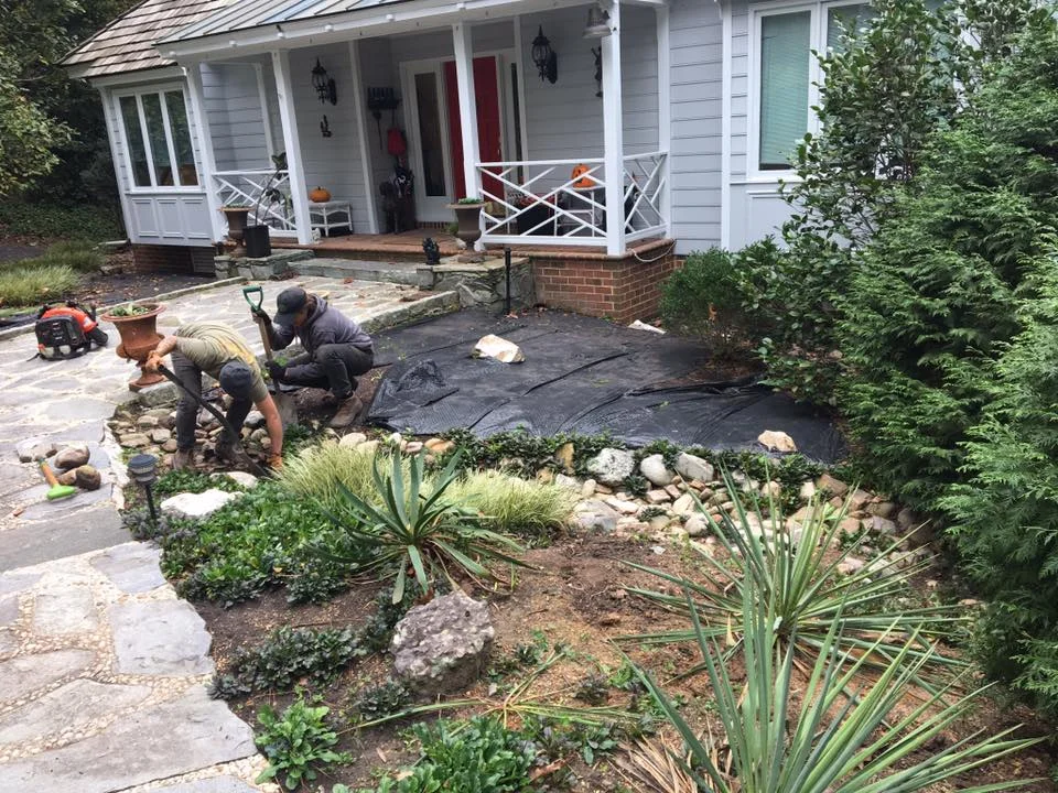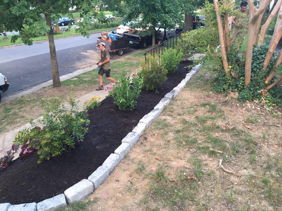 FRONT BED PREP, EDGING, AND MULCHING. NATIVE PLANT INSTALLATION AND FLAGSTONE WALKWAY IN BACKYARD FROM CAR PORT TO BACK PORCH.